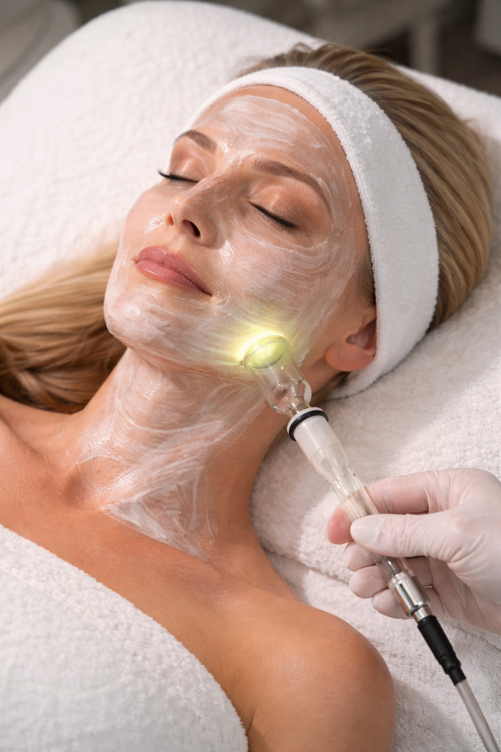 This advanced treatment combines radiofrequency (RF) and electrical muscle stimulation (EMS) to help firm and tone the skin while supporting collagen production. It can improve facial contour, reduce the appearance of fine lines, and enhance overall skin texture—promoting a lifted, smoother, and more youthful appearance.